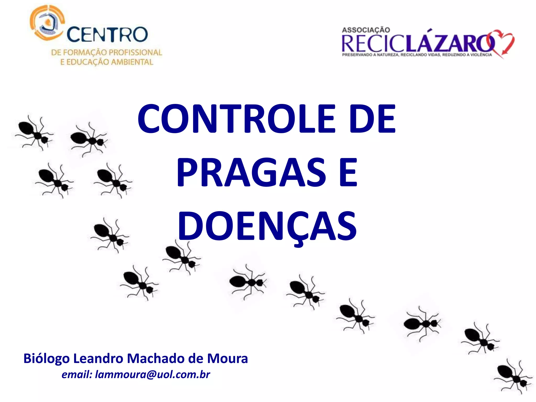 O documento aborda o controle de pragas e doenças em plantas, descrevendo pragas comuns, suas características e métodos de controle, tanto na agricultura convencional quanto orgânica. Destaca a importância de um solo saudável e o uso de práticas como rotação de culturas e controle biológico para minimizar ataques de pragas. Também apresenta receitas de pesticidas naturais e o impacto das doenças fúngicas, virais e bacterianas nas plantas.