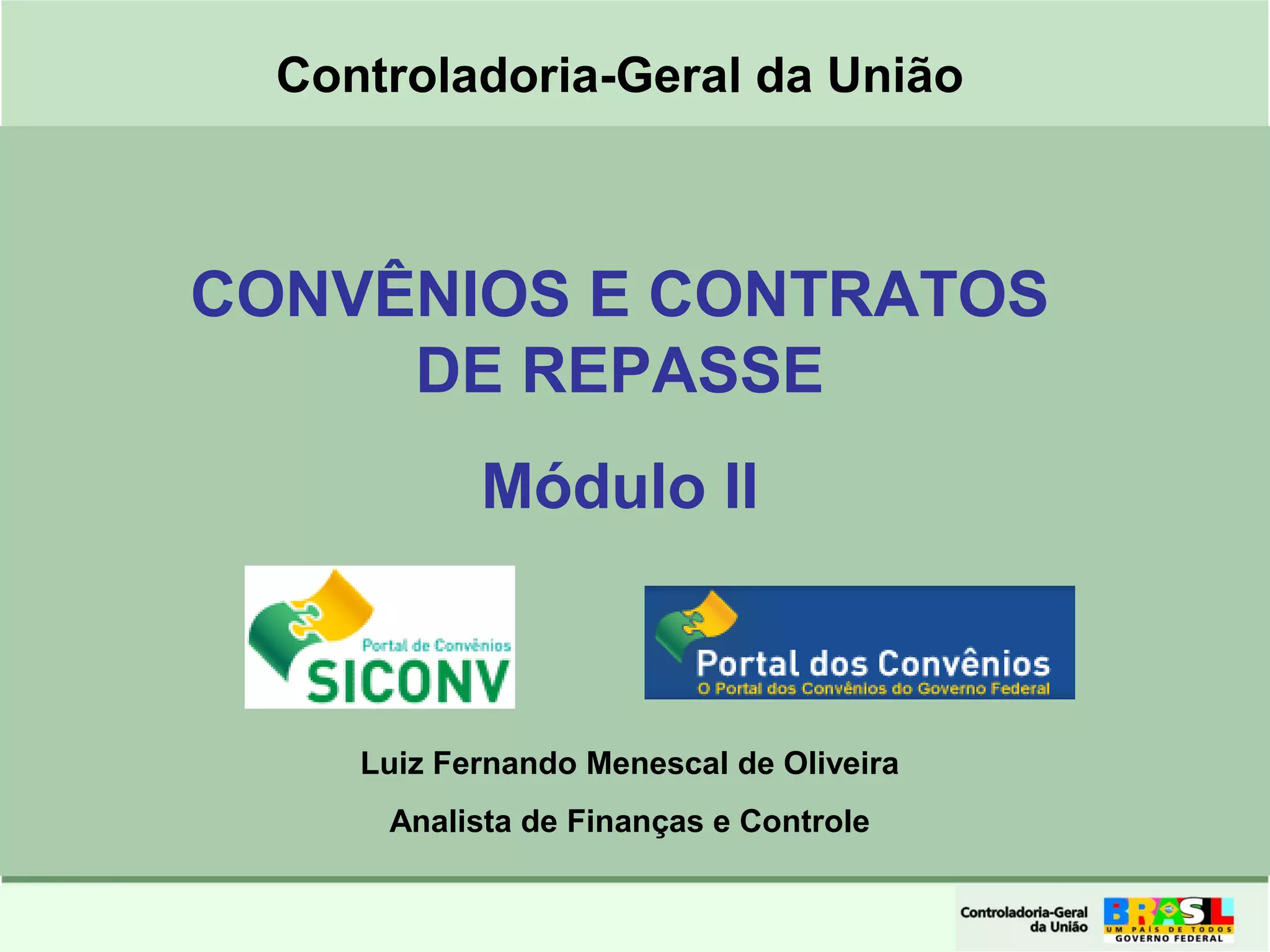 O Sistema de Gestão de Convênios e Contratos de Repasse – SICONV