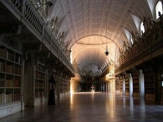 O que maisimpressiona em todo o Convento de Mafra é a sua biblioteca. Com cerca de 40 000 livros com encadernações em couro gravadas em ouro, inclui uma segunda edição de "Os Lusíadas" de Luís de Camões. Biblioteca