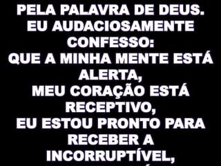 O documento instrui a ter reverência à Palavra de Deus, ficar de pé e em silêncio durante um momento de oração pela leitura bíblica, e levantar a Bíblia para orar com o ministério Aviva, cujos contatos e site são fornecidos.