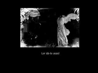 O documento convida os alunos a lerem na biblioteca da escola, destacando os benefícios da leitura como proteção contra ventos e tempestades e a capacidade de abrir uma nova dimensão do mundo. Citando Almada Negreiros, enfatiza que certas palavras podem bater mais forte no coração e que a leitura permite ter o mundo na palma da mão, independentemente da riqueza ou pobreza. Conclui convidando os alunos a irem à biblioteca, possivelmente acompanhados.
