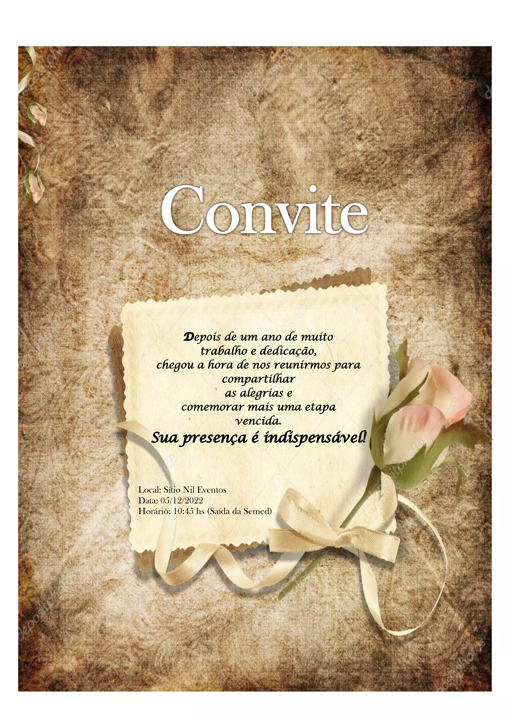 Após um ano de trabalho, os funcionários da Semed se reunirão no Sítio Nil Eventos em 05/12/2022 às 10:45 hs para comemorar mais uma etapa concluída e compartilhar alegrias.