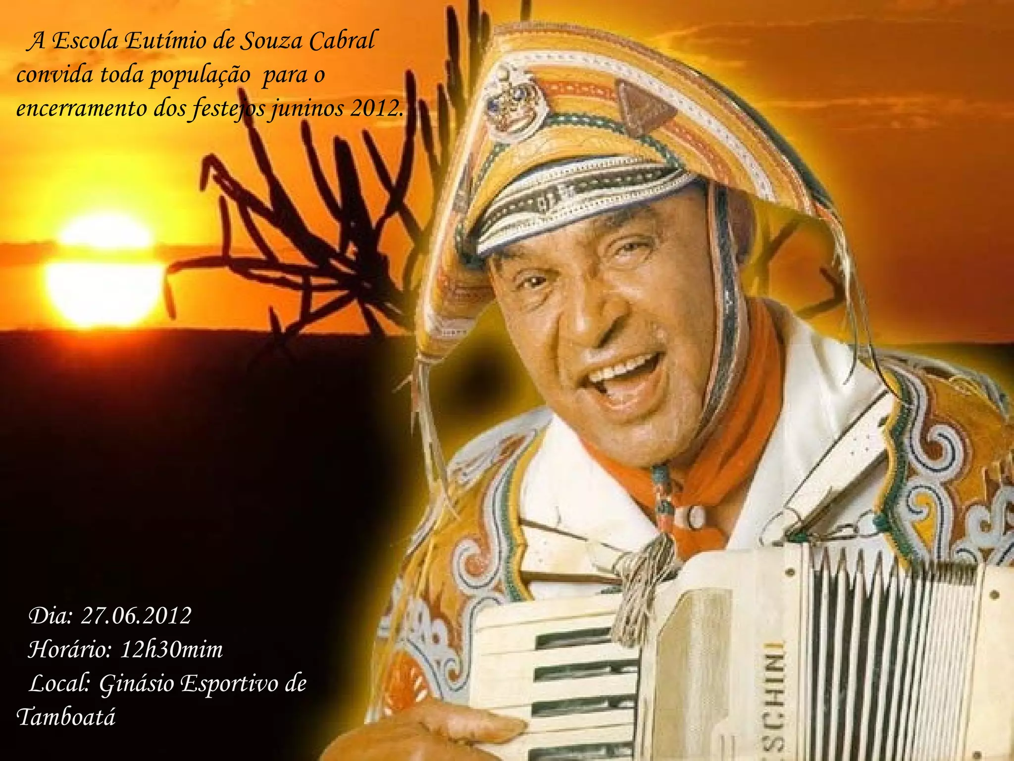 A Escola Eutímio de Souza Cabral convida a população para o encerramento dos festejos juninos de 2012 no dia 27 de junho às 12h30 no Ginásio Esportivo de Tamboatá.