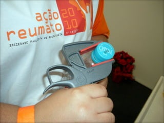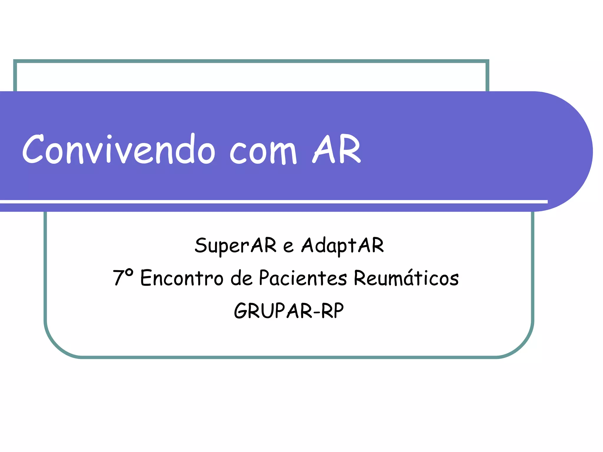 O documento discute a Artrite Reumatoide (AR), uma doença inflamatória crônica que afeta as articulações. Apresenta sintomas como dor e deformidades, afetando cerca de 2 milhões de pessoas no Brasil. Também discute os sentimentos comuns após o diagnóstico, como medo e revolta, e a importância de se adaptar à doença e envolver a família no tratamento.