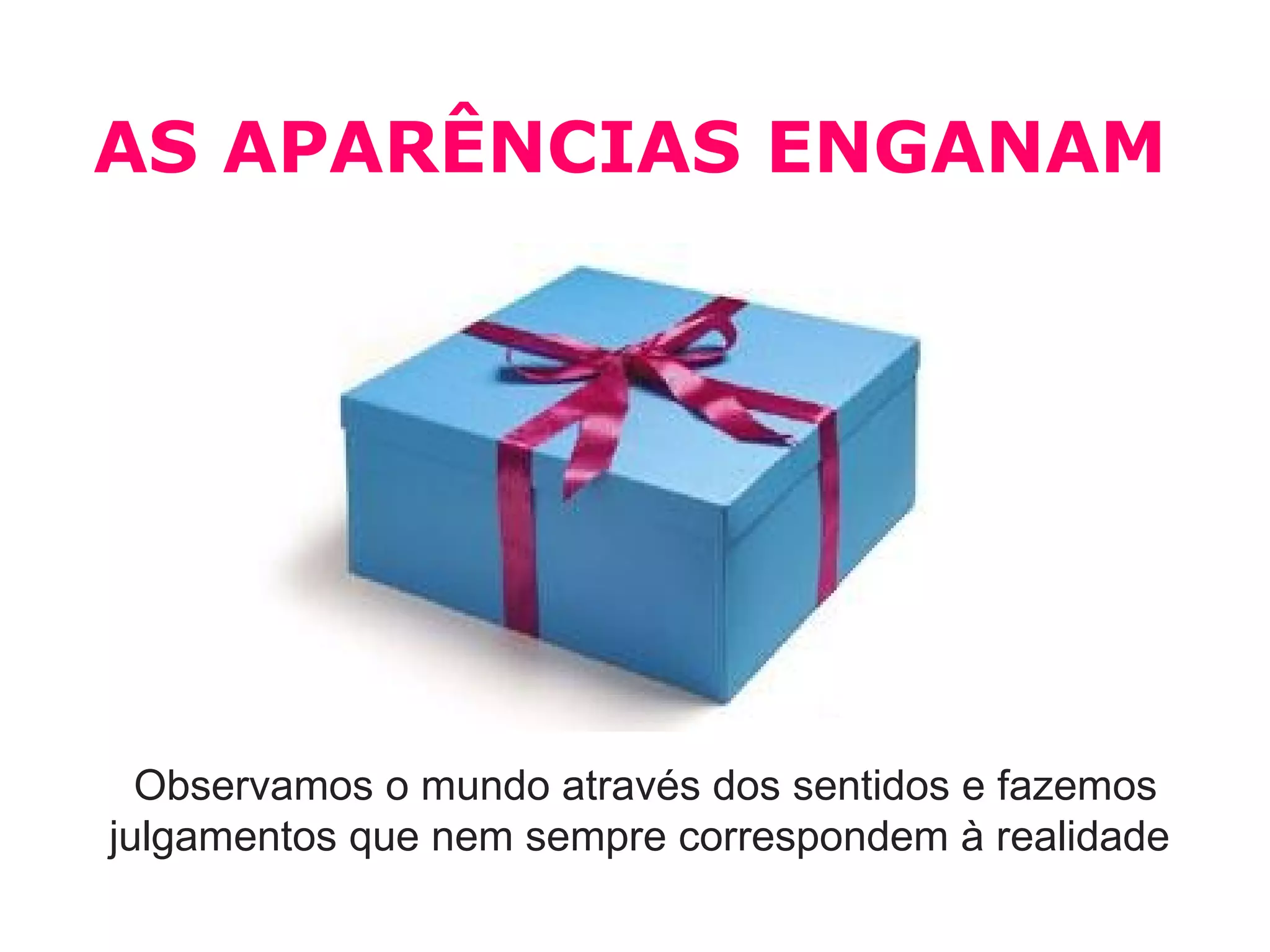 1) As aparências nem sempre correspondem à realidade de acordo com nossos sentidos enganosos.