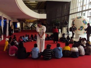 O documento descreve as atividades da Casa Brasil durante a Copa do Mundo de 2010 na África do Sul, incluindo a promoção da imagem do Brasil e de Belo Horizonte, além das campanhas de publicidade da Embratur para promover o turismo brasileiro até as Olimpíadas de 2012 em Londres.