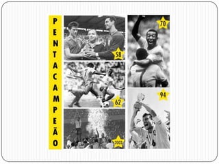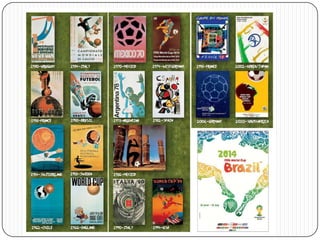 Este documento resume as principais Copas do Mundo de futebol realizadas entre 1930 e 2014, incluindo os campeões de cada edição, países-sede e outros detalhes marcantes. A Copa do Mundo de 2014 será realizada novamente no Brasil e contará com a participação recorde de 6 seleções sul-americanas.