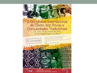 Este documento discute os desafios de garantir os direitos dos povos e comunidades tradicionais no Brasil. Apresenta as políticas públicas e legislações que reconheceram esses grupos e discute o caso emblemático dos índios Munduruku, que sofreram violação de direitos. Defende que o reconhecimento da diversidade cultural desses grupos contribui para a constituição de um campo jurídico do "direito étnico" no país.