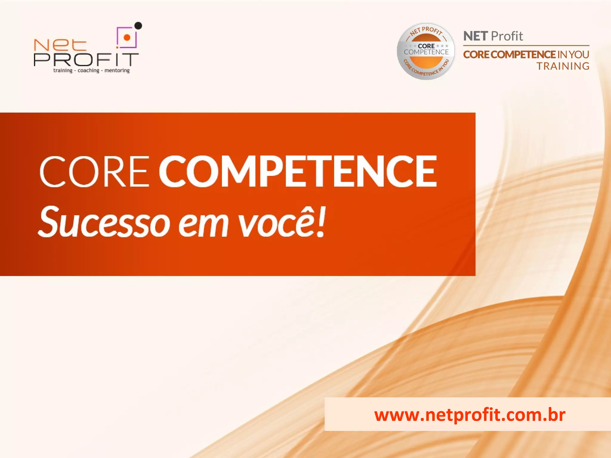 O documento descreve um programa de treinamento chamado "Core Competence - O Sucesso em Você" oferecido pela empresa Net Profit Brasil. O programa tem como objetivo desenvolver atitudes e habilidades essenciais para o sucesso pessoal e profissional dos participantes através de cinco encontros semanais. Mais de 5 mil pessoas já participaram do programa, que tem índice de satisfação superior a 96%.