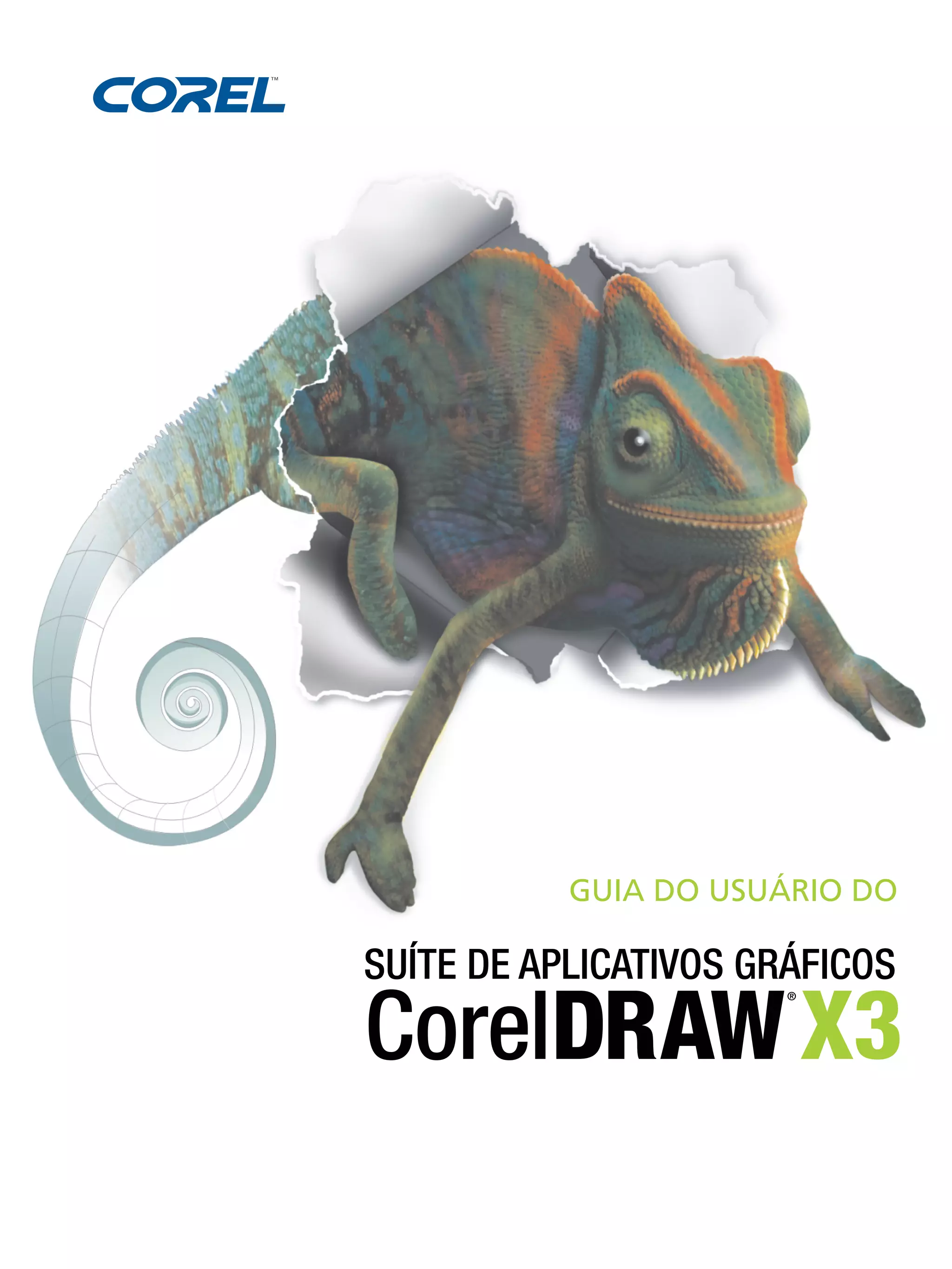 Este guia do usuário descreve como usar os aplicativos da suíte CorelDRAW X3, incluindo o CorelDRAW para criação de vetores e o Corel PHOTO-PAINT para edição de bitmap. Ele contém instruções passo a passo sobre como desenhar formas e linhas, trabalhar com objetos, aplicar preenchimentos, e muito mais.