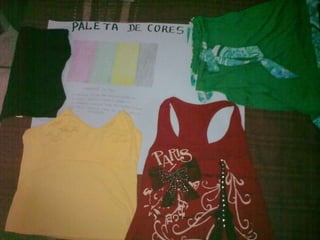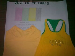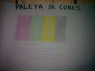 O documento discute as cores vermelho, verde, amarelo e preto e como elas inspiram diferentes emoções. O vermelho inspira desejo, paixão e energia. O verde inspira a natureza e esperança. O amarelo inspira calor e positividade. O preto harmoniza com outras cores e inspira desejos obscuros.
