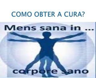 O documento discute a influência dos pensamentos e emoções na saúde mental e física, enfatizando que o corpo reflete o estado interior do espírito. A autocura é destacada como um processo que requer a purificação do pensamento e a superação de mágoas e ressentimentos. Além disso, propõe que os ensinamentos do evangelho de Jesus oferecem os remédios necessários para a transformação interior e a saúde integral.