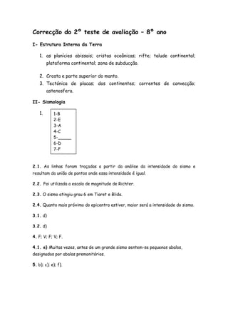1) O documento discute a estrutura interna da Terra, sismologia, vulcanismo e rochas/minerais.