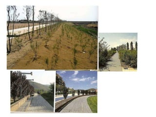 O documento discute corredores verdes como estratégia de ordenamento territorial e mobilidade urbana sustentável. Apresenta exemplos de corredores verdes em cidades europeias e suas funções ecológicas, culturais e de mobilidade. Também aborda a necessidade de se repensar o modelo de rua em Salvador para considerar a acessibilidade e as múltiplas funções do espaço público.
