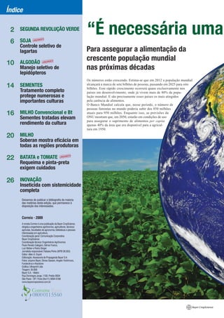 O documento discute a necessidade de uma segunda revolução verde para garantir a segurança alimentar global diante do crescimento populacional e das mudanças climáticas. Fatores como perda de terras agrícolas, eventos climáticos extremos e estresses nas plantagens ameaçam a produção agrícola. Cientistas buscam tornar as culturas mais produtivas e resistentes a esses desafios para assegurar o suprimento de alimentos de forma sustentável.