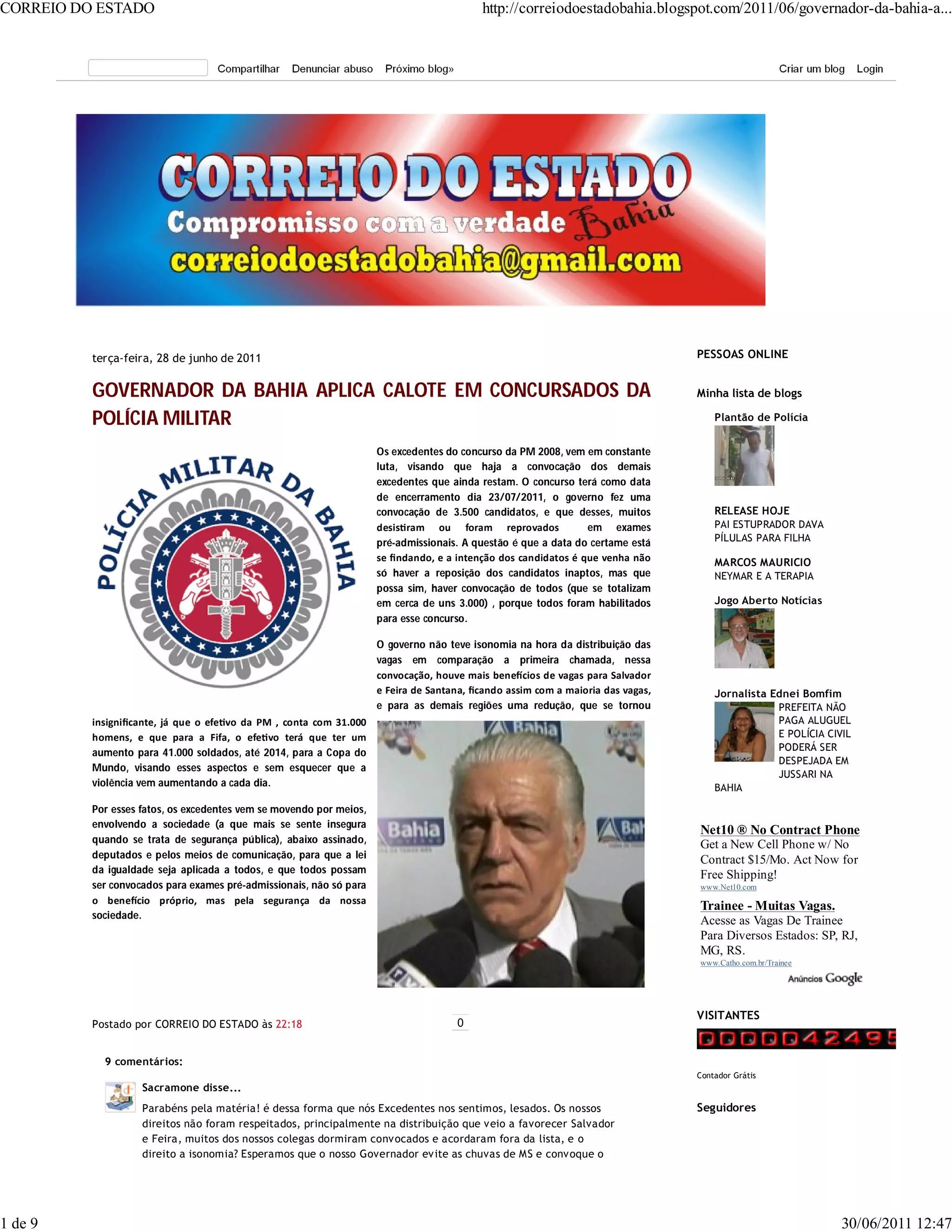O documento discute a insatisfação de candidatos aprovados em concurso público para a Polícia Militar da Bahia em 2008 com a convocação de apenas 3.500 candidatos pelo governo estadual, deixando cerca de 3.000 candidatos habilitados de fora, além de apontar uma distribuição desproporcional de vagas entre regiões do estado.
