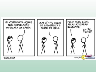3) A correlação é introduzida como uma medida do relacionamento linear entre variáveis e como ela pode ser representada graficamente através de diagramas de dispersão.