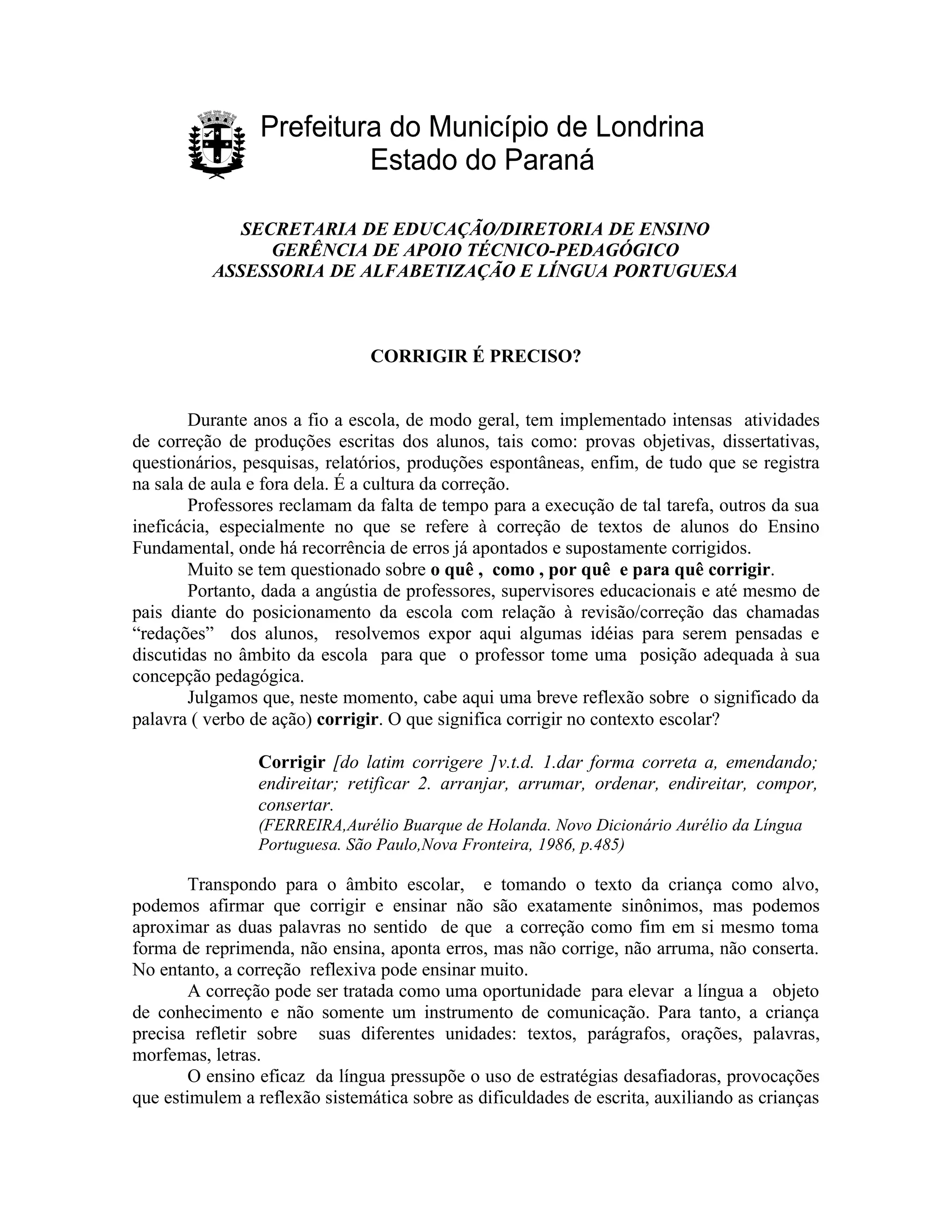 O documento discute a prática da correção de produções escritas de alunos e propõe que seja feita de forma reflexiva para ensinar, não apenas apontar erros. A correção deve estimular os alunos a pensar sobre a escrita e fazer melhorias, em vez de simplesmente marcar o que está errado. É importante corrigir de forma a promover a aprendizagem, não como repreensão.
