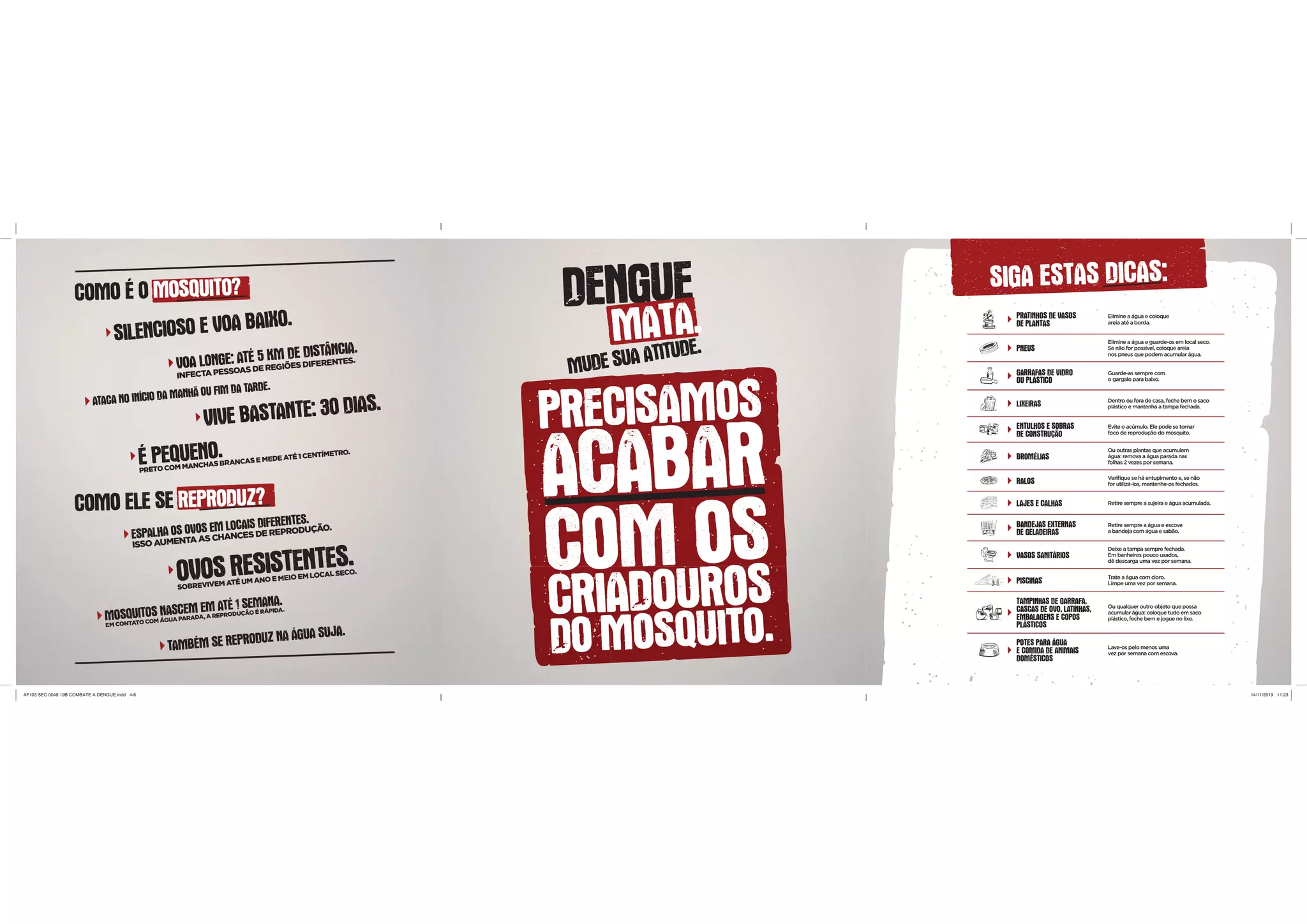 Este documento fornece dicas para prevenir a reprodução do mosquito da dengue, removendo água parada de locais como pneus, entulhos, lajes, bromélias e outros recipientes que possam acumular água. Também recomenda limpar regularmente piscinas, bandejas de geladeiras e potes de animais, além de manter lixeiras, ralos e vasos sanitários tampados.