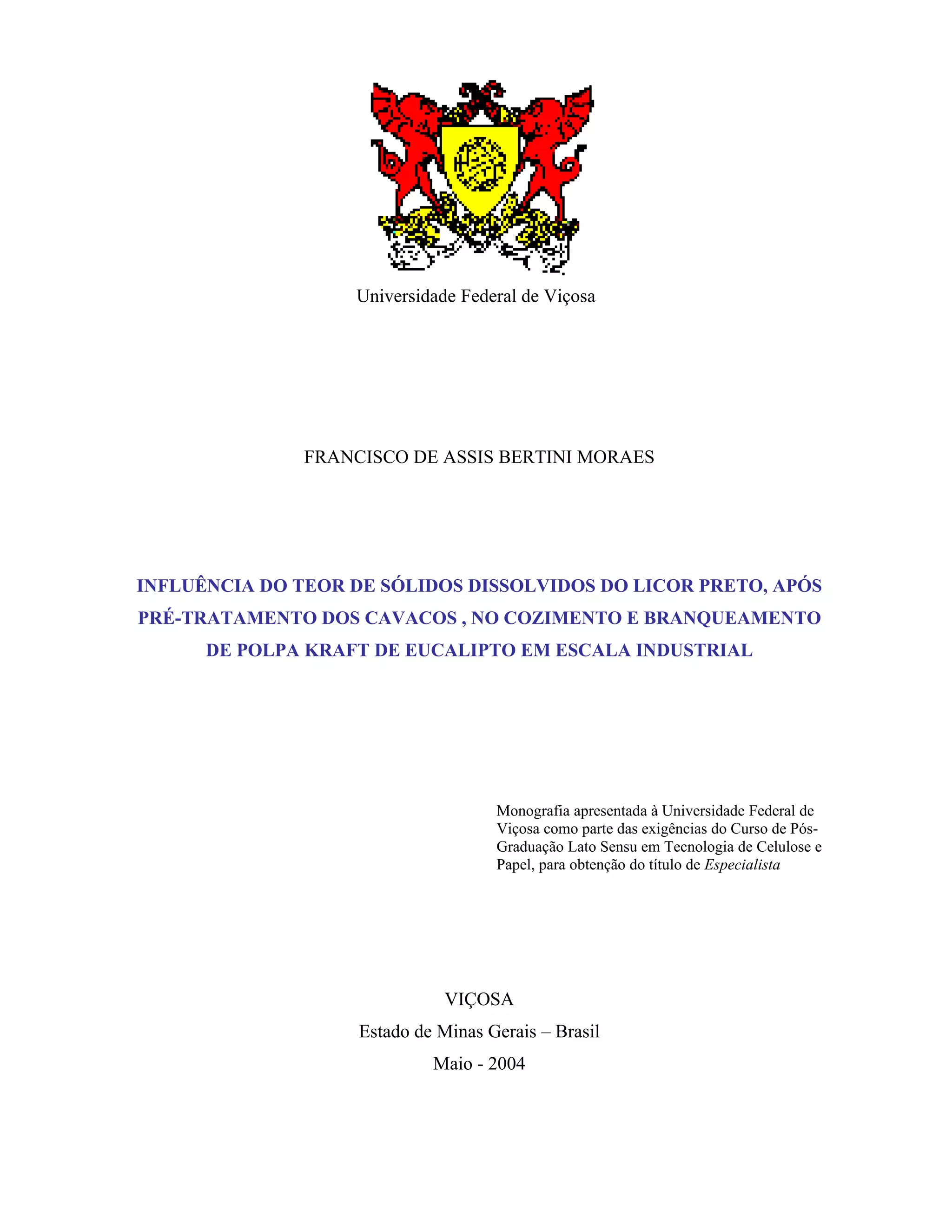 A monografia de Francisco de Assis Bertini Moraes, apresentada à Universidade Federal de Viçosa, investiga a influência do teor de sólidos dissolvidos do licor preto no cozimento e branqueamento de polpa kraft de eucalipto em um digestor contínuo de alta escala. O estudo revela que a adição de licor de lavagem durante o pré-tratamento dos cavacos pode melhorar a seletividade do cozimento e a alvura da polpa, resultando em potencial aumento na branqueabilidade e no rendimento global. Os resultados indicam que a modificação nas condições de processo do cozimento pode impactar positivamente a eficiência do sistema.