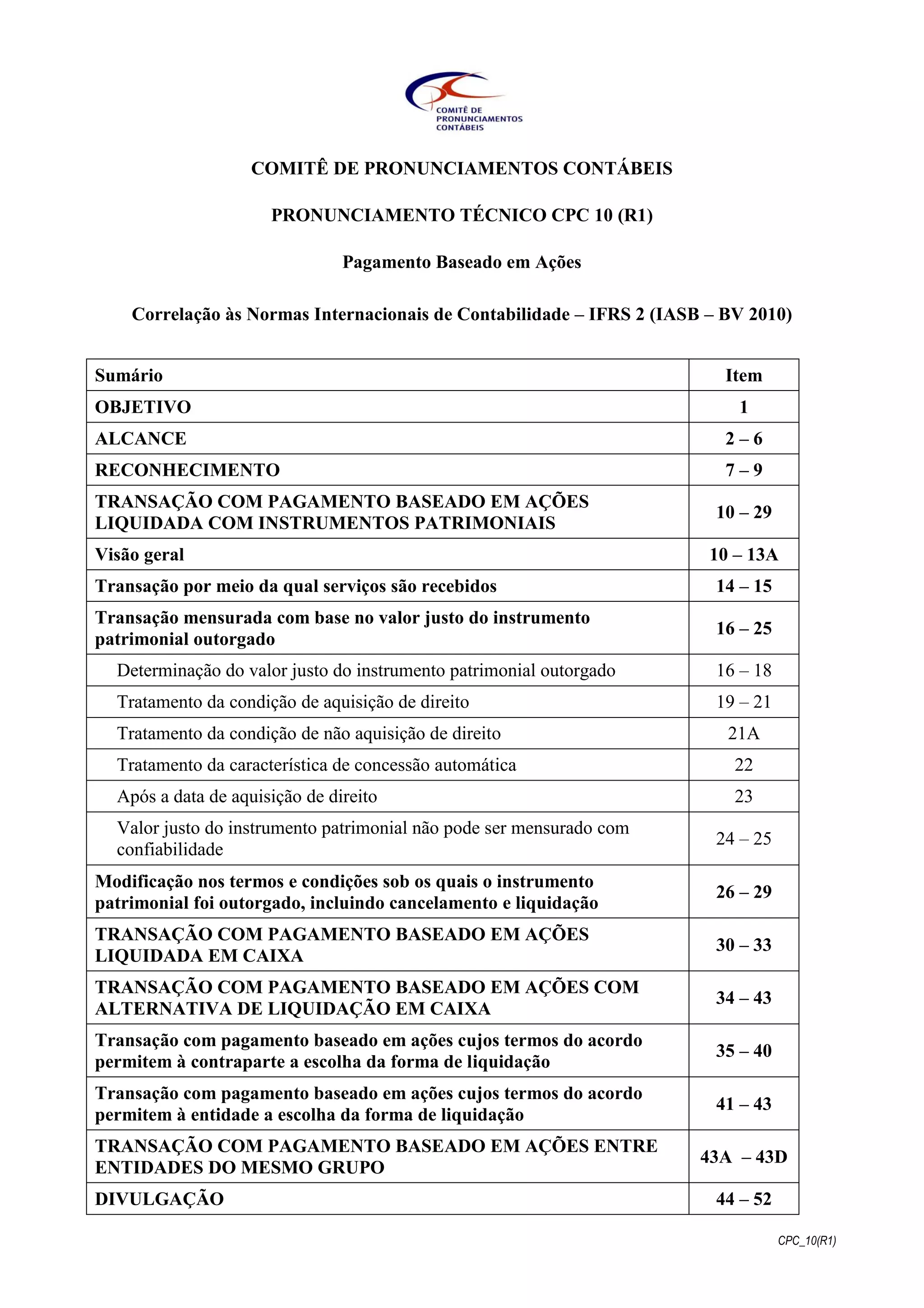 Este documento estabelece diretrizes para o reconhecimento e divulgação de transações com pagamento baseado em ações. Ele exige que os efeitos dessas transações estejam refletidos no resultado e no patrimônio líquido da entidade, incluindo despesas associadas à concessão de opções de ações a empregados. O documento também fornece orientações sobre como mensurar o valor justo desses pagamentos com base em ações.