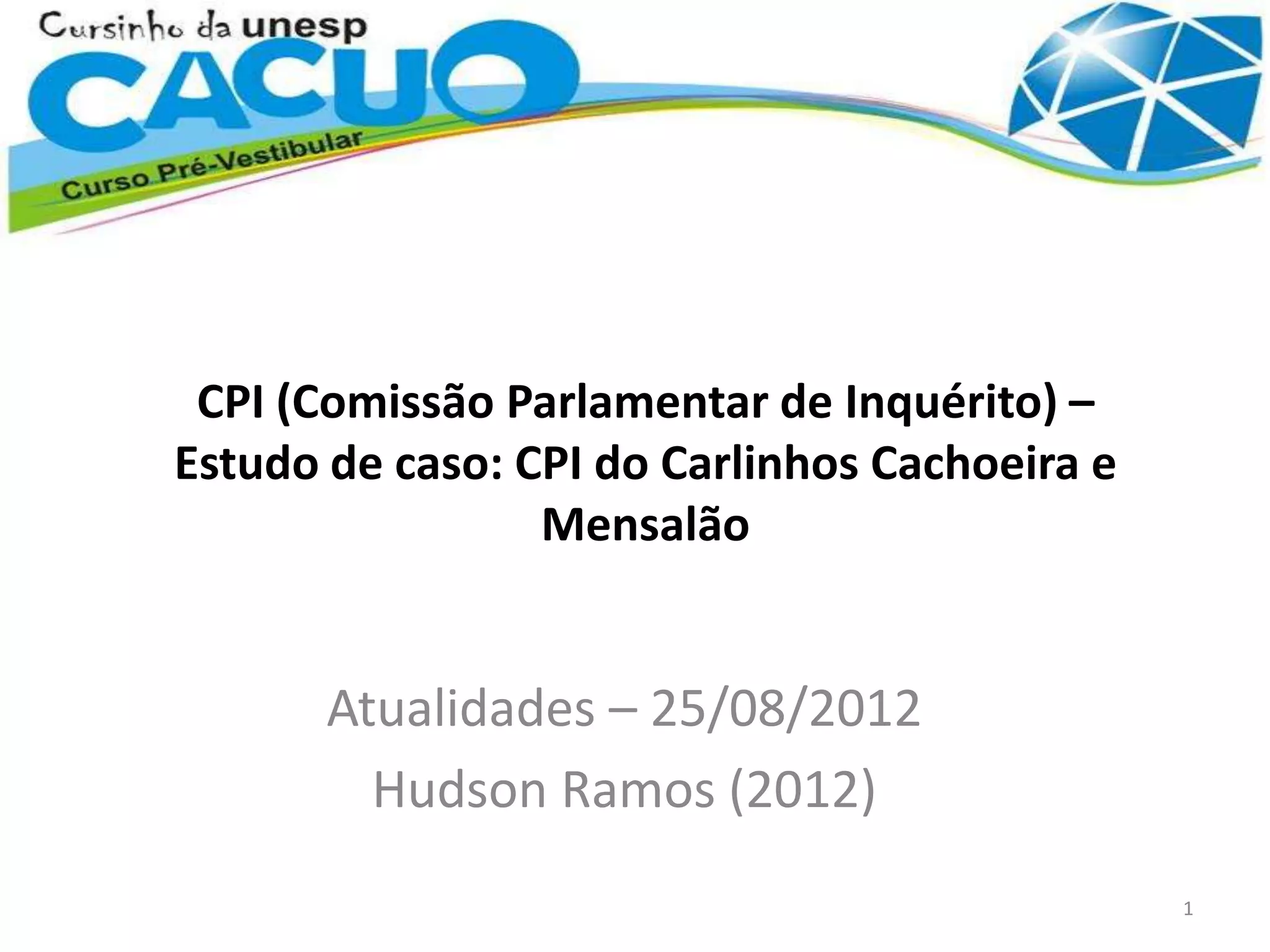 Este documento resume o funcionamento e objetivos das Comissões Parlamentares de Inquérito (CPI) no Brasil, incluindo uma cronologia de casos importantes de corrupção que levaram à criação de CPIs. Algumas das CPIs mais relevantes mencionadas são a CPI do Mensalão de 2005-2006 e a CPI de Carlinhos Cachoeira em 2012. O documento também fornece detalhes sobre o processo legal para a criação e funcionamento de CPIs no Congresso Nacional brasileiro.