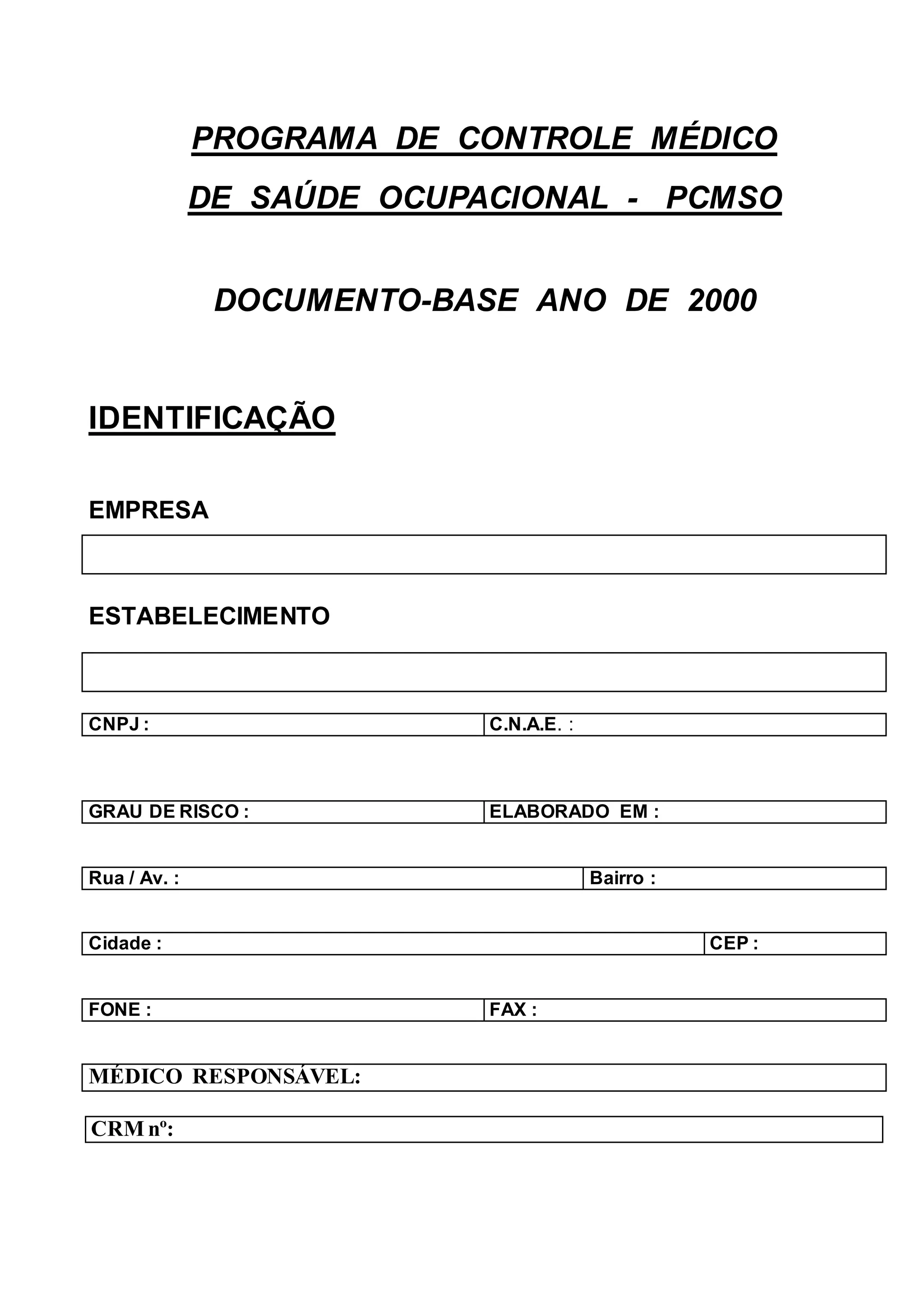 Este documento apresenta o planejamento anual de 2000 para o Programa de Controle Médico da Saúde Ocupacional de uma empresa. Ele descreve os objetivos, diretrizes, metas e prioridades do programa, além de detalhar a metodologia, cronograma e parâmetros de controle biológico dos riscos presentes nos locais de trabalho.