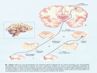1. O documento descreve as estruturas e circuitos cerebrais envolvidos no processamento sensorial e motor.