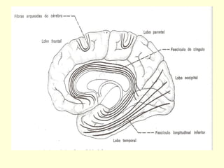 2. Inclui detalhes sobre as camadas do córtex cerebral, fibras de associação e projeção, e vias descendentes motoras do córtex para a medula espinhal.