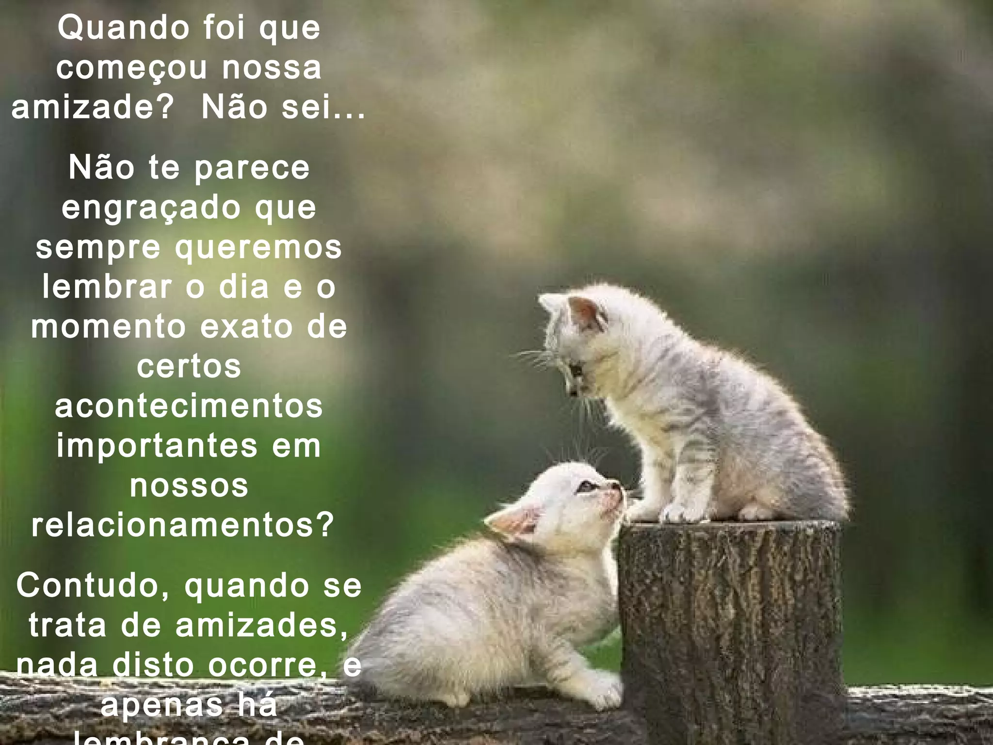 O documento discute a natureza das amizades e como elas se desenvolvem ao longo do tempo sem que necessariamente se lembre a data exata em que começaram. Embora se queira marcar momentos importantes em relacionamentos, amizades se constroem gradualmente através da confiança, respeito e carinho construídos ao longo de anos ou meses. O mais importante é valorizar a amizade no presente, não em datas específicas.