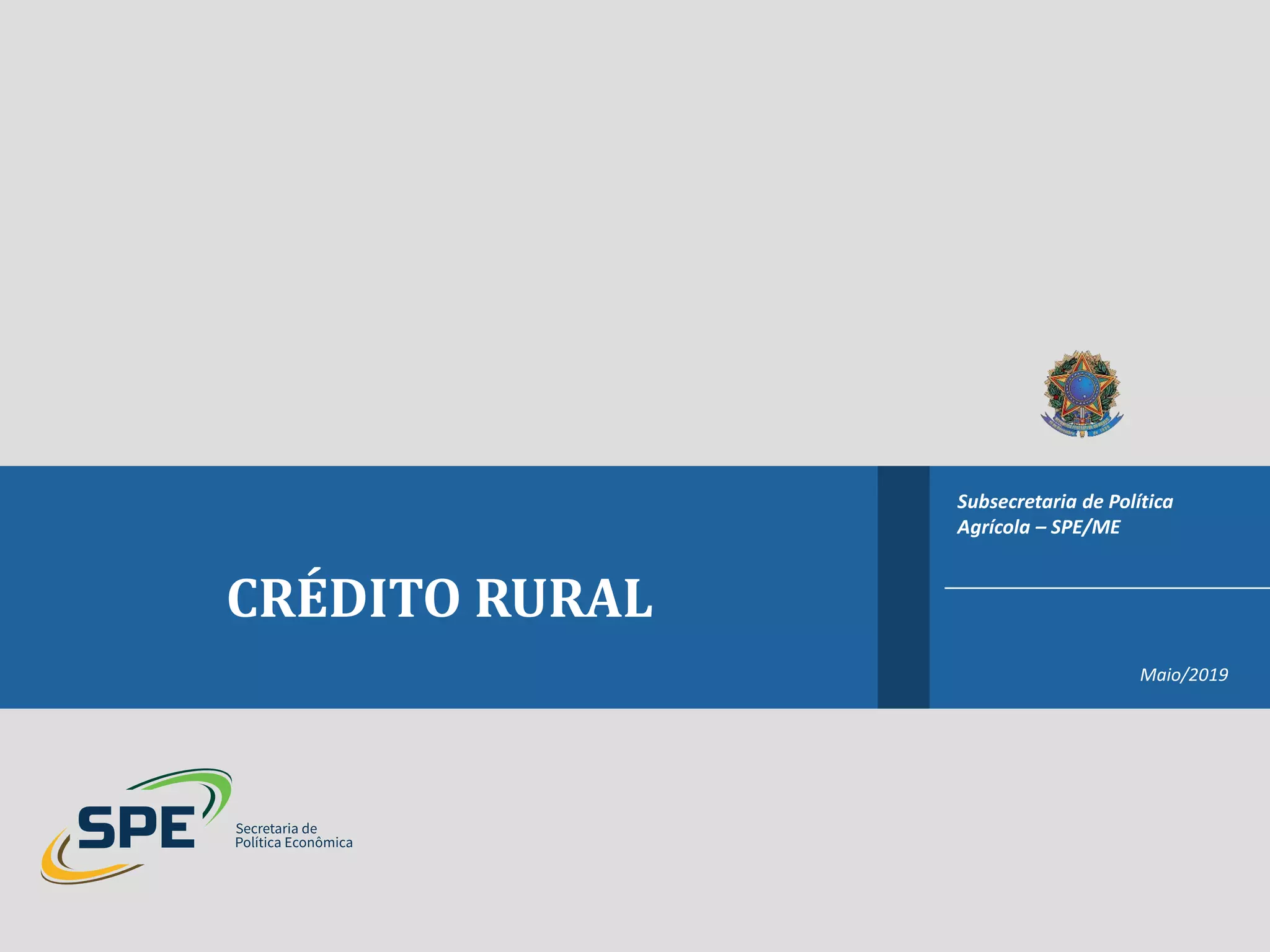 O documento discute as principais normativas relacionadas ao crédito rural no Brasil, abordando leis, regulamentações e fontes de recursos. Destaca a importância do crédito rural em relação à agricultura familiar, renegociação de dívidas e políticas ambientais. Também menciona ações para simplificação do crédito e incentivos para práticas sustentáveis na agricultura.