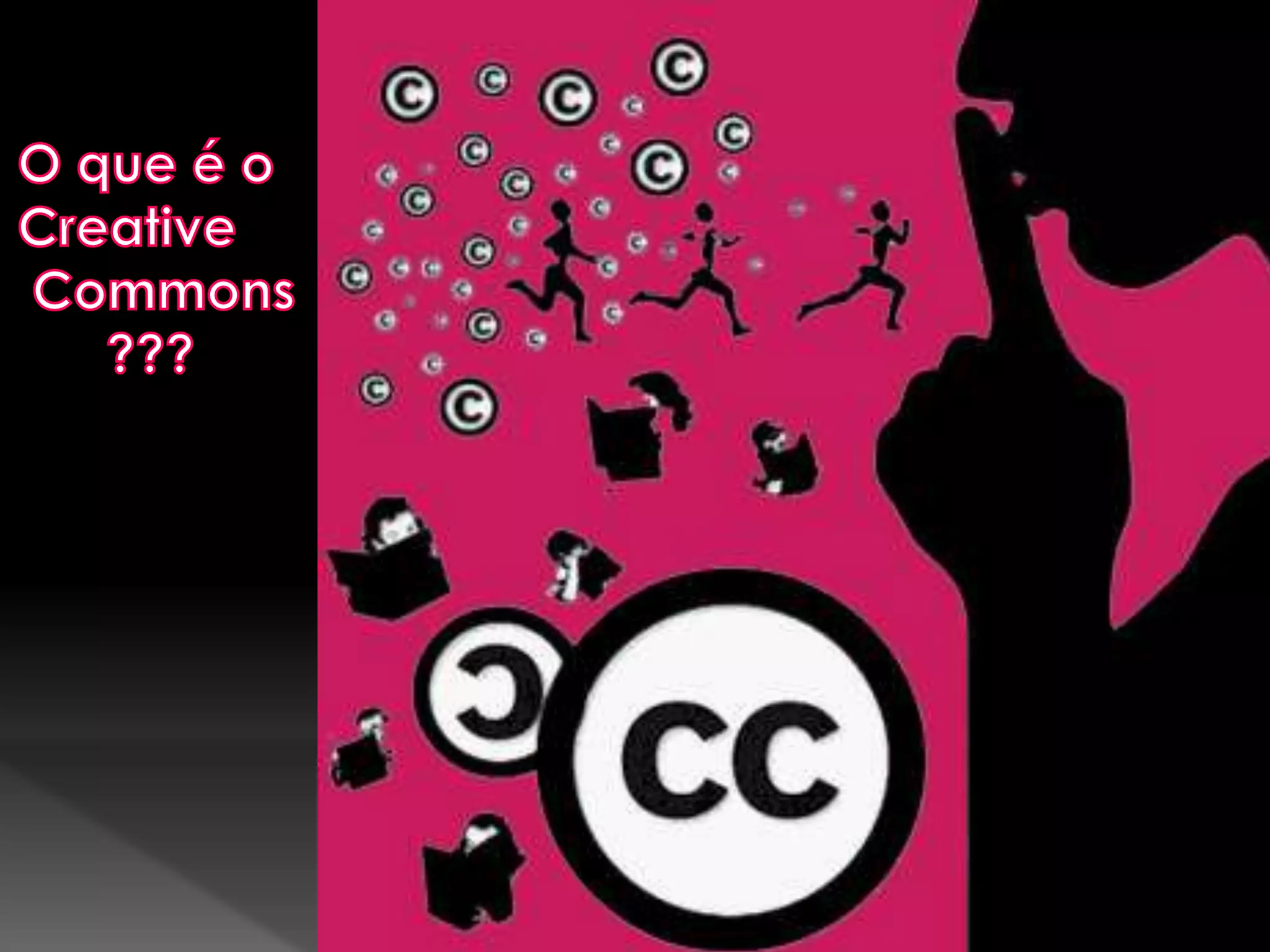 O documento apresenta as licenças Creative Commons, uma iniciativa para flexibilizar o uso de obras protegidas por direitos autorais, permitindo que autores definam as condições de uso de suas criações. As licenças variam em permissões, desde o uso comercial até restrições severas, como a proibição de obras derivadas. O projeto tem apoio significativo no Brasil, destacando a participação da Fundação Getulio Vargas e do artista Gilberto Gil.