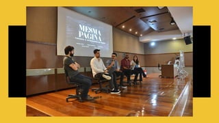 O documento discute habilidades fundamentais para o trabalho em equipe na criação publicitária, como administração de conflitos, comunicação, proatividade, inovação e confiança. A ideia é compartilhar experiências de profissionais criativos para inspirar outros.