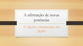 1) O Japão saiu da Segunda Guerra Mundial destruído e sob domínio dos EUA.