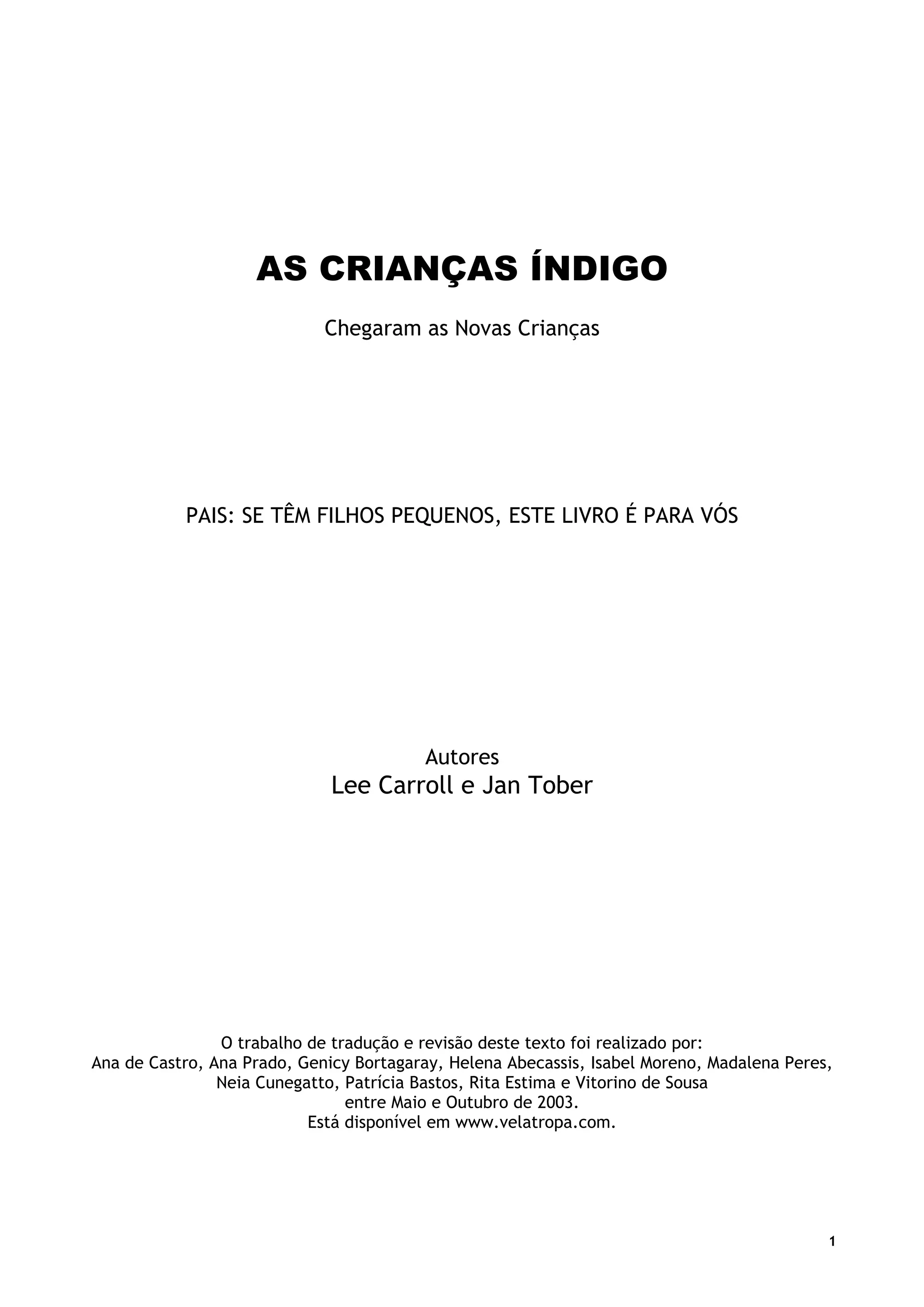 1. O documento discute as crianças índigo, um novo tipo de criança que demonstra atributos psicológicos e padrões de comportamento únicos.