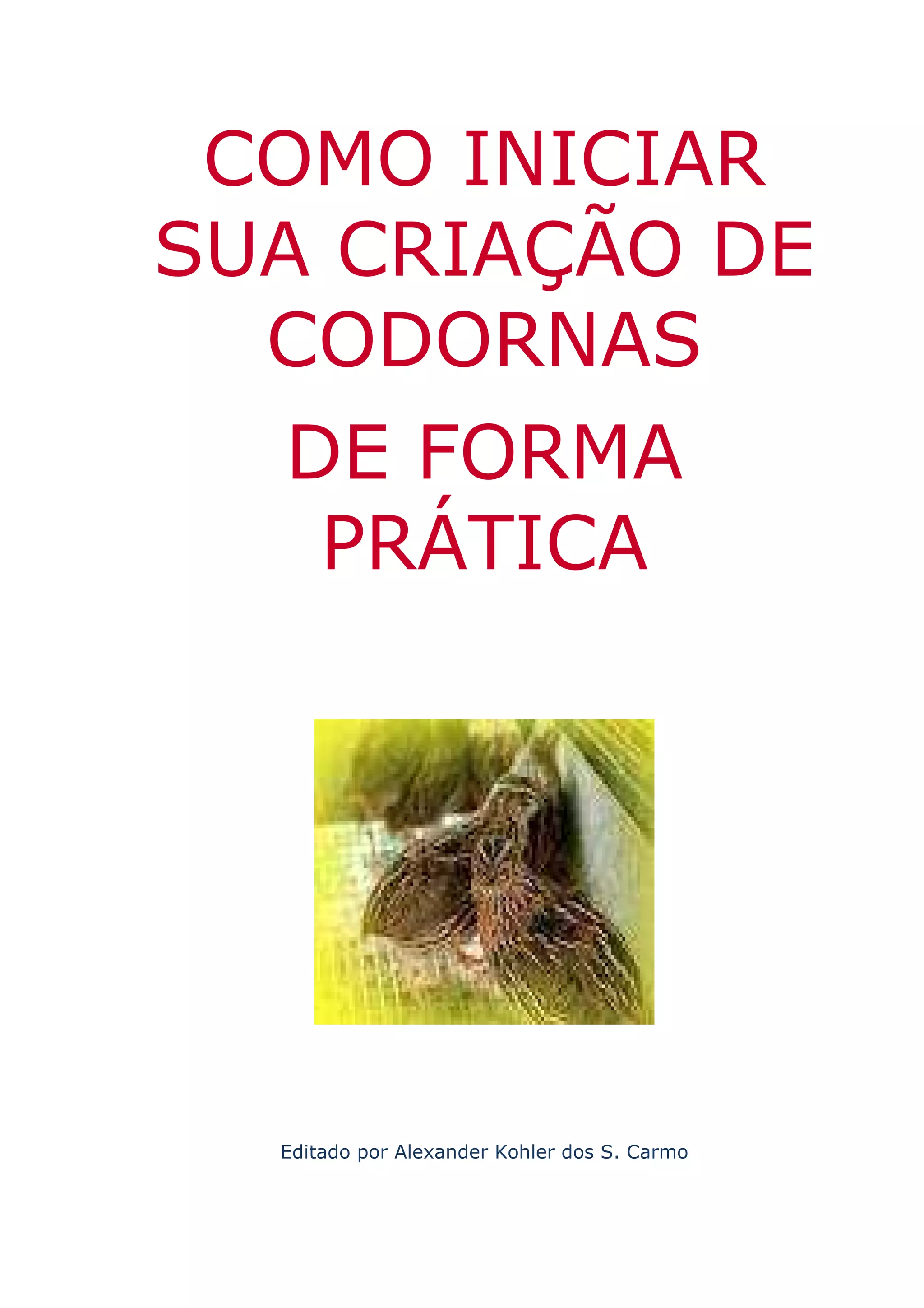 Este documento fornece orientações sobre como iniciar a criação de codornas de forma prática. Ele aborda tópicos como vantagens da criação de codornas, estrutura básica necessária, equipamentos, investimento inicial e cuidados com as aves.