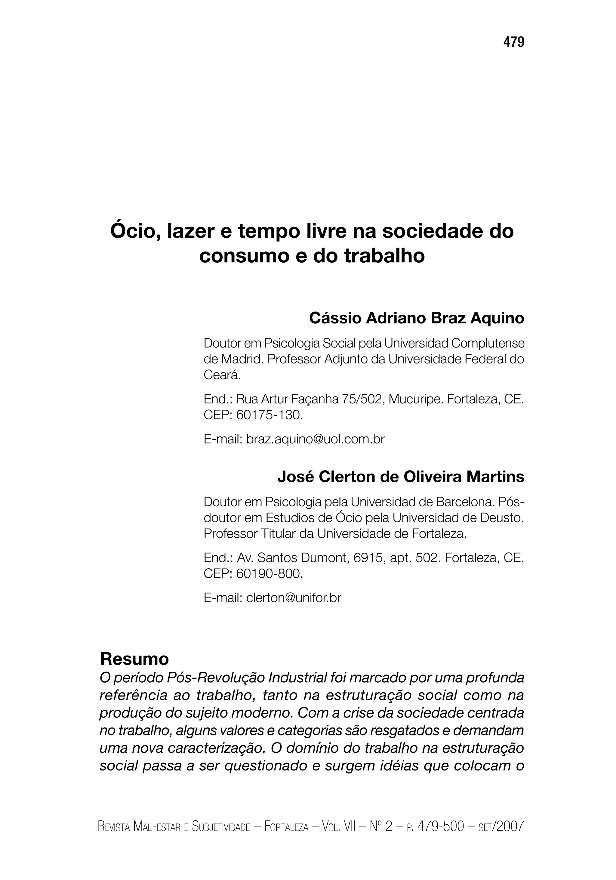 O documento discute como o trabalho deixou de ser a atividade central na sociedade pós-industrial, levando ao questionamento de sua dominância. Isso abre espaço para pensar o lazer, o ócio e o tempo livre como elementos estruturantes da nova sociedade. O texto reflete sobre essas categorias e sua importância para produção subjetiva, além de discutir como a educação pouco prepara para o uso do tempo de lazer.