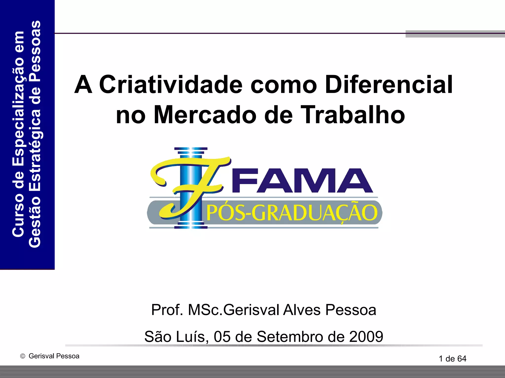 1) A apresentação discute a importância da criatividade no mercado de trabalho e como desenvolvê-la.