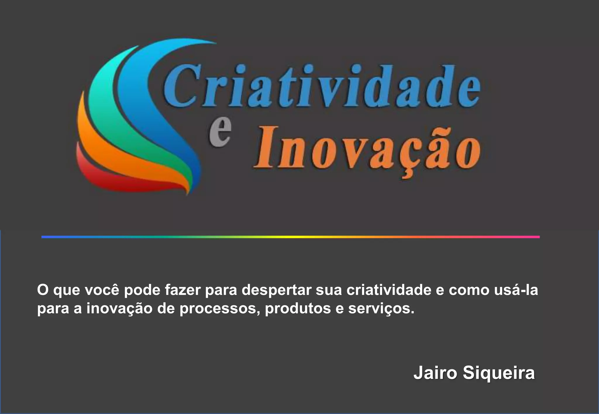 O documento discute como despertar a criatividade e aplicá-la na inovação de processos, produtos e serviços. Aborda que a criatividade pode ser aprendida ao remover bloqueios, e apresenta técnicas como Solução Criativa de Problemas e Princípios Inventivos da TRIZ para gerar novas ideias. Também discute a necessidade de inovação constante diante da aceleração dos ciclos de vida dos negócios.