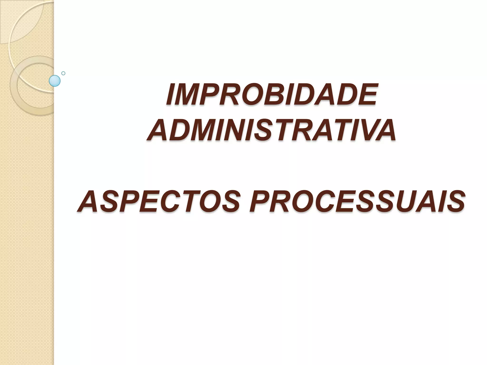 O documento discute aspectos processuais da Lei de Improbidade Administrativa. Apresenta os principais pontos do procedimento administrativo e do inquérito civil, incluindo a possibilidade de medidas cautelares em casos de enriquecimento ilícito ou lesão ao erário público.