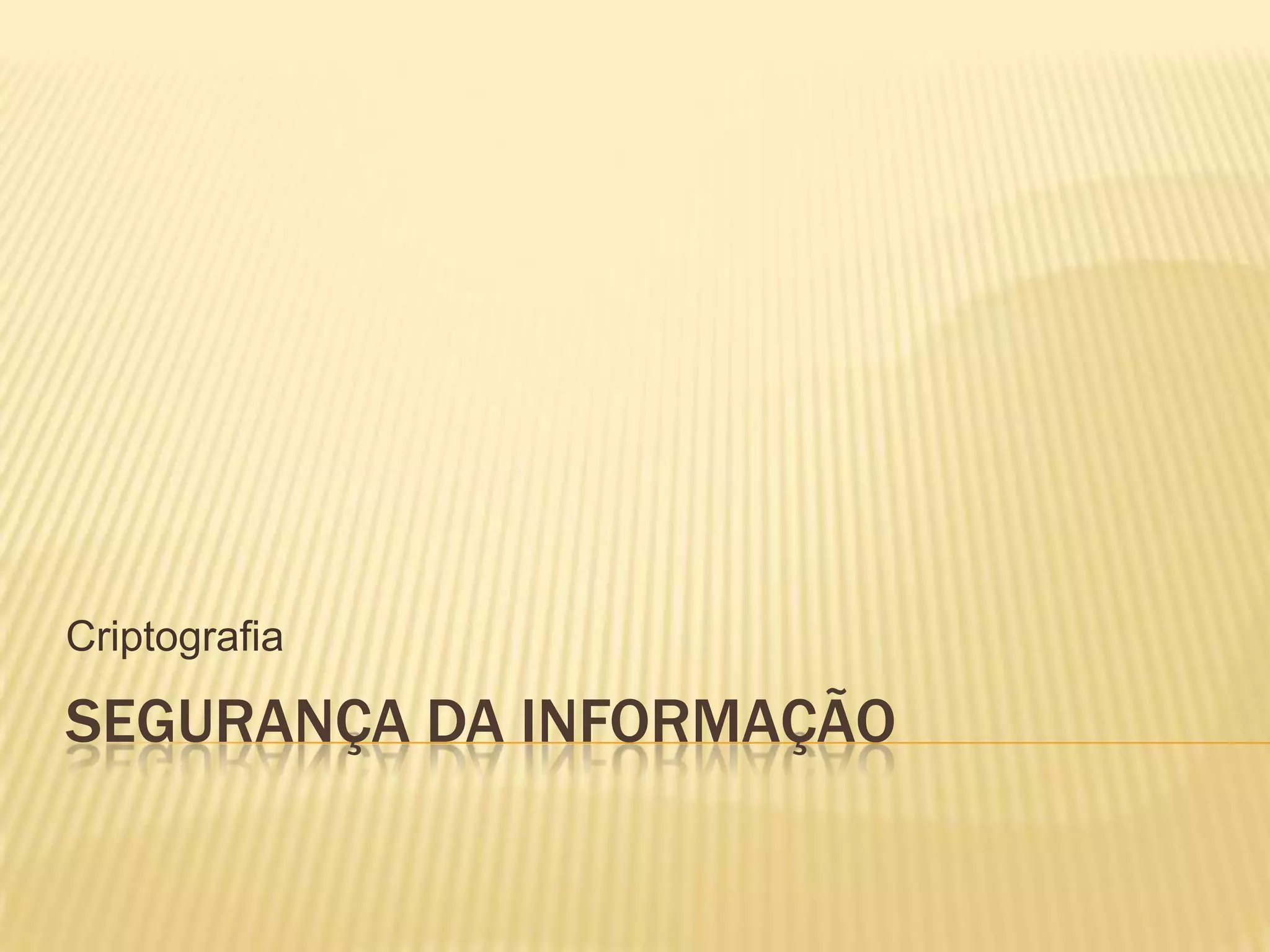 O documento discute criptografia, que é um conjunto de técnicas para esconder informações de acesso não autorizado. A criptografia transforma informações legíveis, como e-mails, em uma sequência ilegível de caracteres que só pode ser decodificada por quem tem a chave correta. Existem dois tipos principais de criptografia: criptografia de chave simétrica que usa a mesma chave para codificar e decodificar, e criptografia de chaves assimétricas que usa chaves públicas e privadas diferentes.