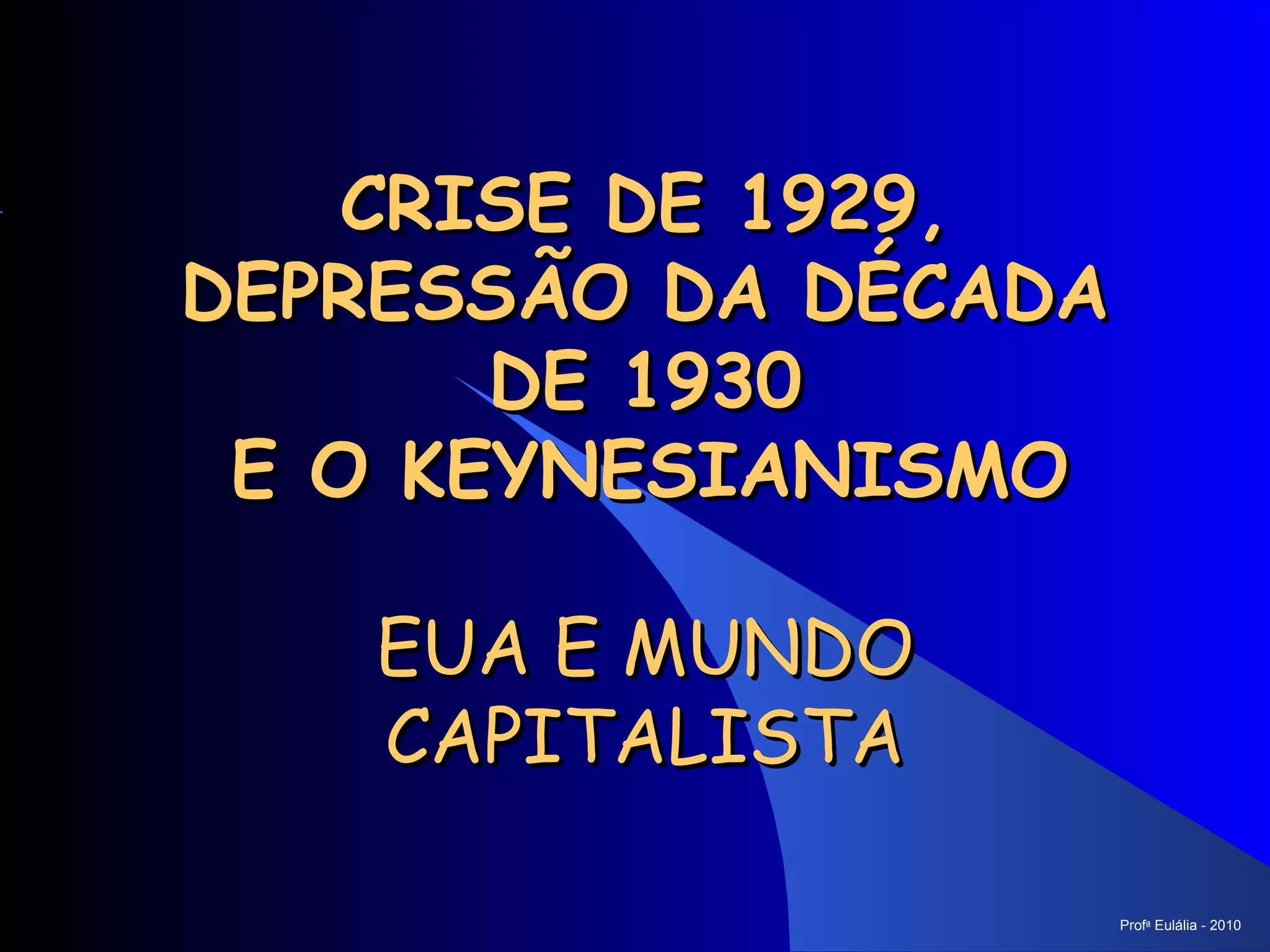 O documento descreve a crise econômica de 1929 e a Grande Depressão da década de 1930 nos EUA e no mundo capitalista. Detalha os antecedentes da prosperidade dos EUA na década de 1920, a explosão da crise em 1929 com o crash da Bolsa de Valores de Nova York, e a expansão da crise globalmente. Também resume as políticas keynesianas do New Deal implementadas pelo presidente Roosevelt para solucionar a crise, como obras públicas e estímulos fiscais, que levaram à recuperação econômica.