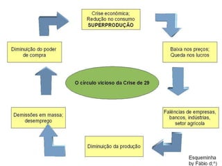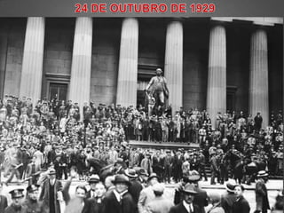 O documento descreve os principais eventos globais entre 1918 e 1939, incluindo a Primeira Guerra Mundial, a Crise de 1929 e o surgimento do nazifascismo na Alemanha, levando à Segunda Guerra Mundial. Também discute o impacto da Crise de 1929 no Brasil, incluindo a queda da economia do café e a ascensão de Getúlio Vargas ao poder.