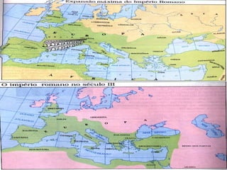 A queda do Império Romano do Ocidente ocorreu devido a vários fatores como o fim das guerras, a falta de escravos, revoltas militares, invasões bárbaras e a ruralização forçada da população com a construção de castelos fortificados pelos senhores feudais que governavam os novos feudos.