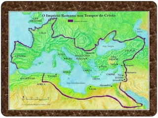 O documento descreve a crise do Império Romano através de três pontos: a crise econômica devido ao alto custo do grande território sem novas expansões, a crise política com disputas pelo poder entre generais e o crescimento do Cristianismo.