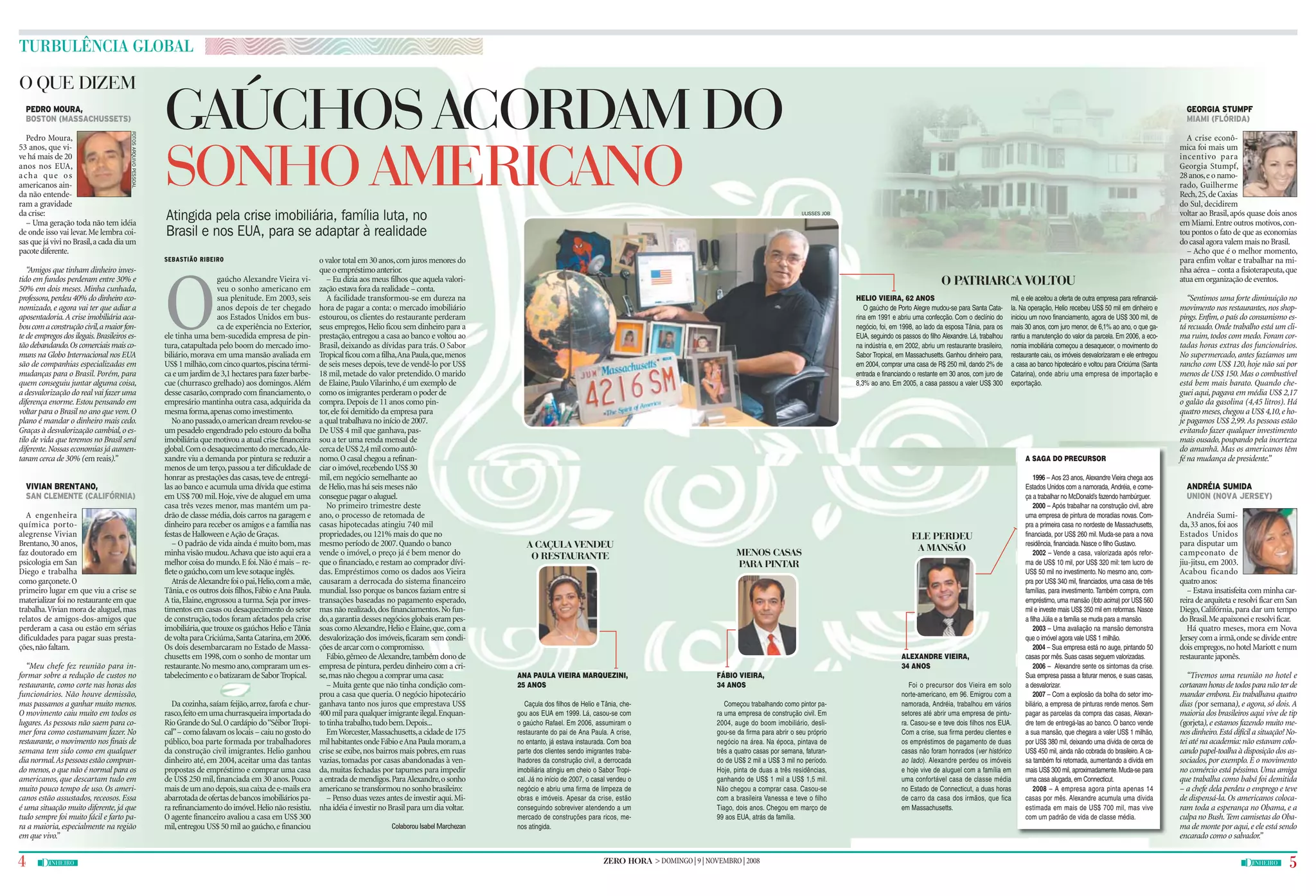 1) Famílias gaúchas que imigraram para os EUA enfrentam dificuldades com a crise imobiliária, como perda de empregos e desvalorização de imóveis e investimentos.