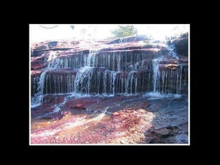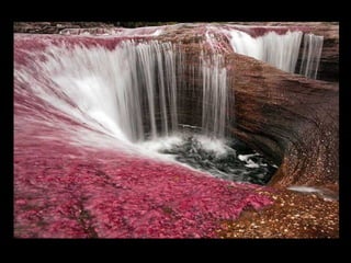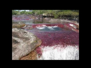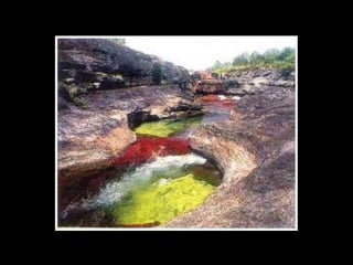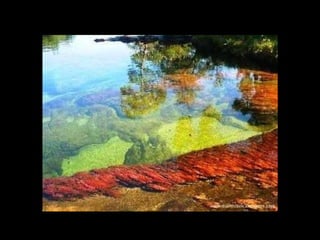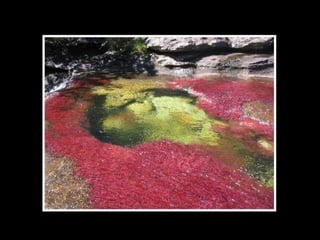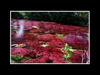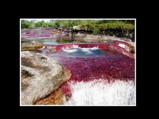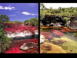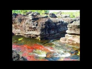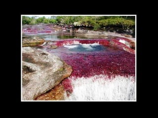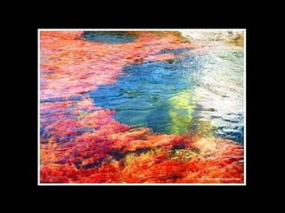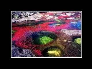 Situado a Serrada Macarena, Colombia, o Caño Cristales , um pequeno rio de apenas 100 Km. de longitude, é conhecido também como O rio das cinco cores Ou o rio mais bonito do mundo , e as tonalidades que adquire se debe às pedras cobertas de musgo y algas de cor amarelo, azul, verde, preto e vermelho.