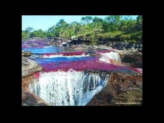 O rio Caño Cristales na Colômbia é conhecido como o rio das cinco cores ou o rio mais bonito do mundo devido às pedras cobertas de musgo e algas amarelo, azul, verde, preto e vermelho que florescem quando o nível da água é adequado.