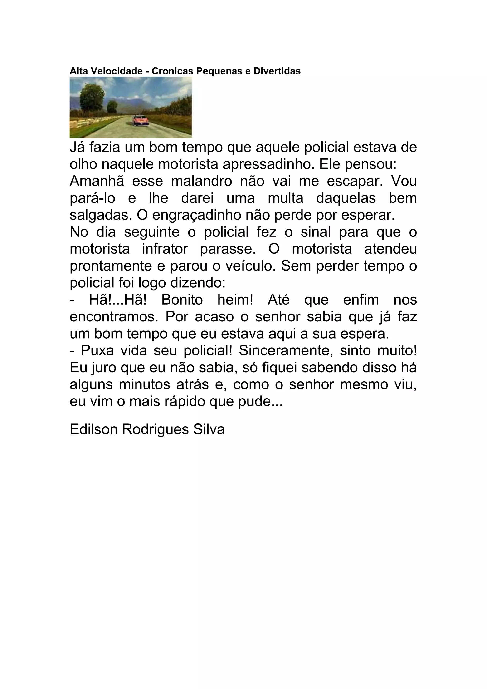 Um policial finalmente consegue parar um motorista que costumava dirigir acima do limite de velocidade. Ao ser parado, o motorista tenta se justificar dizendo que acabou de saber que o policial estava esperando por ele, mas o policial não acredita na desculpa.