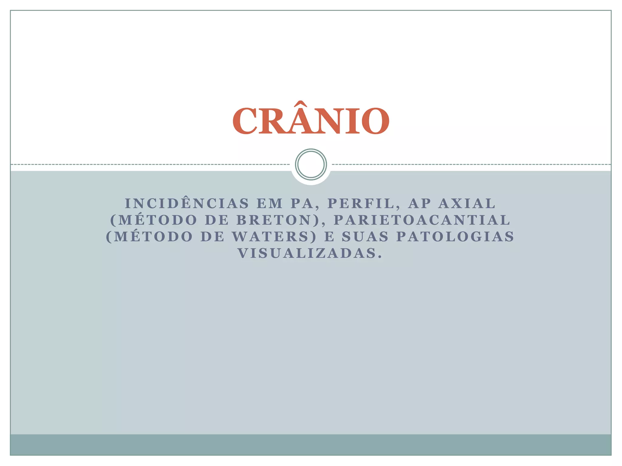O documento trata da anatomia e radiologia do crânio, abordando diferentes técnicas de radiografia, posicionamento do paciente e patologias como fraturas, câncer e doença de Paget. Ele descreve as incidências radiográficas, incluindo os detalhes técnicos necessários para um exame adequado e as características radiográficas de patologias craniadas. Além disso, o documento enfatiza a importância do entendimento anatômico para a interpretação correta das imagens.